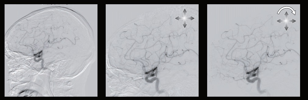 Автоматичне виправлення зсуву положення маски зображення, що був спричинений рухом тіла під час DSA або 2D roadmap. Автоматичний зсув пікселів в режимі реального часу автоматично коригує положення зсуву.
