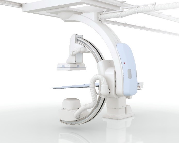 Ця ангіографічна система з кріпленням на стелі спеціально розроблена для використання в операційній кімнаті. С-арка інтегрується з операційним столом та встановлюється в операційній.