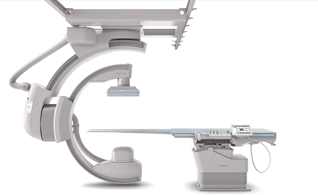 Ангіографічна система Alphenix Sky+ з кріпленням на стелі та великим розміром детектора для застосування в ангіографії та інтервенційній радіології, зокрема інтервенційній онкології.