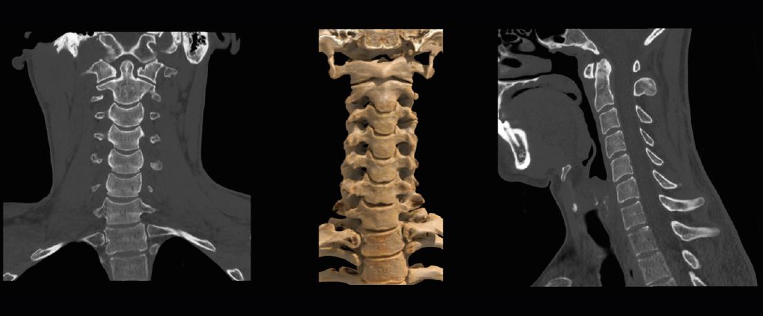 Сканування шийного відділу хребта SilverBeam. На зображеннях видно зменшені артефакти в області плечей.