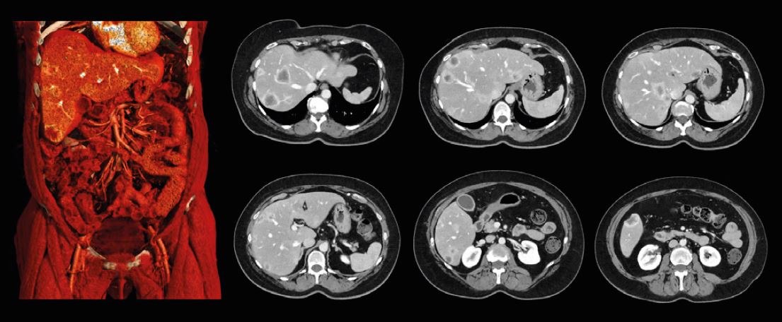 Зображення черевної порожнини з PIQE 1024 товщиною зрізу 0,5 мм демонструють підвищену просторову роздільну здатність у цього пацієнта з ураженням печінки.