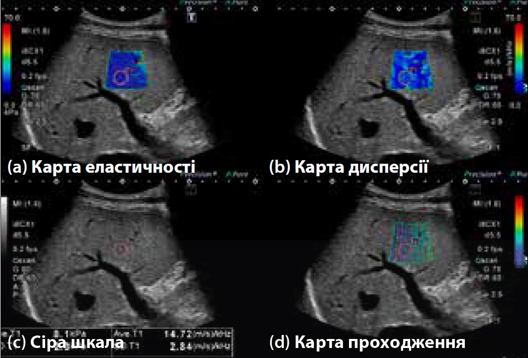 Карта дисперсії зсувної хвилі (SWD) забезпечує візуалізацію відхилення, що дозволяє лікарю оцінити в’язкість печінки.