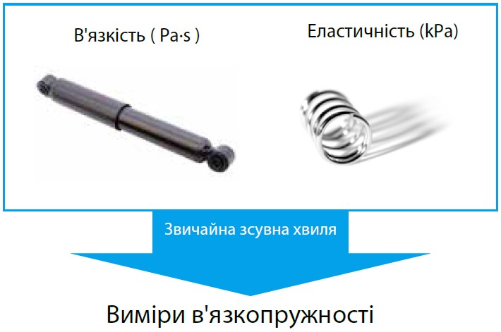 Печінка є в’язкопружною, і швидкість зсувної хвилі залежить як від еластичності, так і від в’язкості. У реологічних моделях в’язкопружного матеріалу в’язкість (Па·с) представлена як амортизатор, а еластичність – як пружина (кПа). В’язкість є мірою опору відносному зсувному руху, тобто, подібно до амортизатора, тканина демонструє рух під час поступової деформації замість раптової деформації. Еластичність вимірює здатність тканини чинити опір деформації та повертатися до початкового стану, тобто подібного до пружини, яка стискається під тиском і розширюється, коли тиск слабшає. Існує дві поширені в'язкопружні моделі: Максвелла, яку можливо представити, як пружину і амортизатор, з'єднані послідовно; і Фойгта, яку можливо представити як паралельно з'єднані пружину і амортизатор.