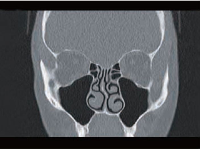 Рис. 12 КТ верхньощелепної пазухи. 0,02 мЗв – жінка 60 років. Доза: DLP 8,9