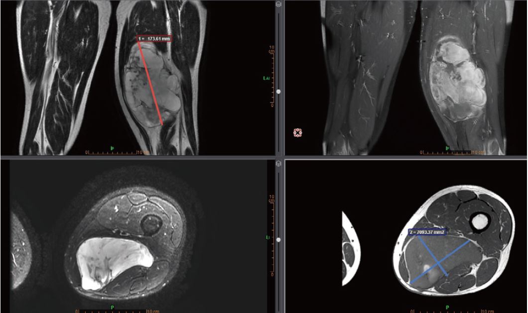 Multi-Modality Viewer полегшує морфологічний огляд (рис. 2), що є важливим кроком в оцінці саркоми м’яких тканин. Для моніторингу цих пухлин доступні вимірювальні або об’ємні інструменти, зокрема з використанням критеріїв відповіді пухлини «RECIST 1.1».