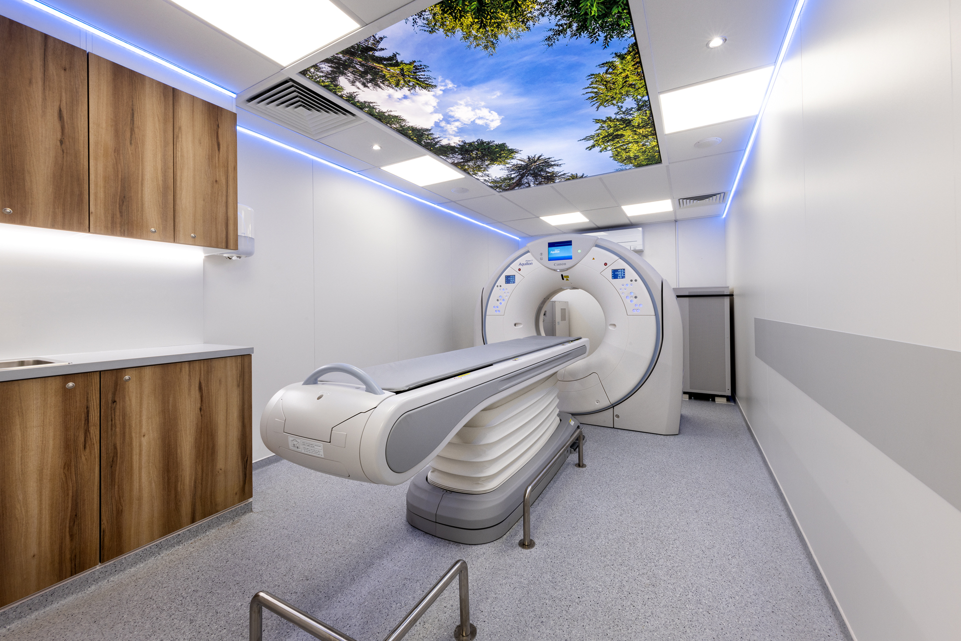 У мобільному контейнері наявні необхідні приміщення як для лікарів та операторів, так і для підготовки пацієнтів (роздягальня, санітарне приміщення). Системи КТ можна укомплектувати ЕКГ-монітором, інжектором, принтером та іншим додатковим спеціалізованим обладнанням. Важливим є те, що всі КТ-системи мають як базові пакети для загальних досліджень, так і спеціалізовані програмні пакети та технології для діагностування будь-яких анатомічних зон пацієнтів.