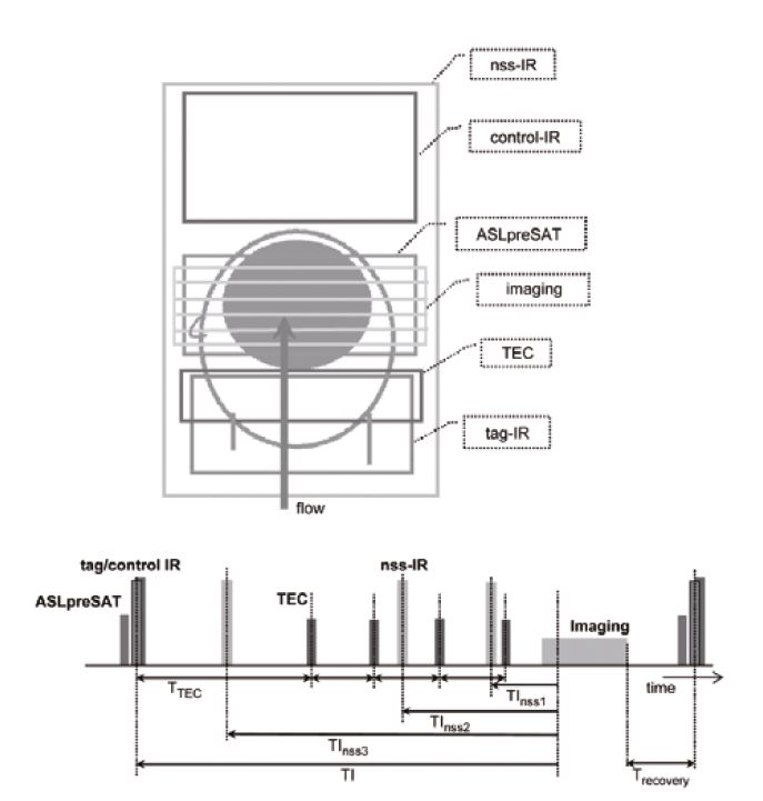 Зображення з міткою потоку або зображення мітки отримують за допомогою радіочастотного імпульсу, який інвертує або збуджує протони крові, що надходять у мозок. Таким чином артеріальна кров стає магнітно поміченою і її можливо у подальшому відстежувати (рис. 1).