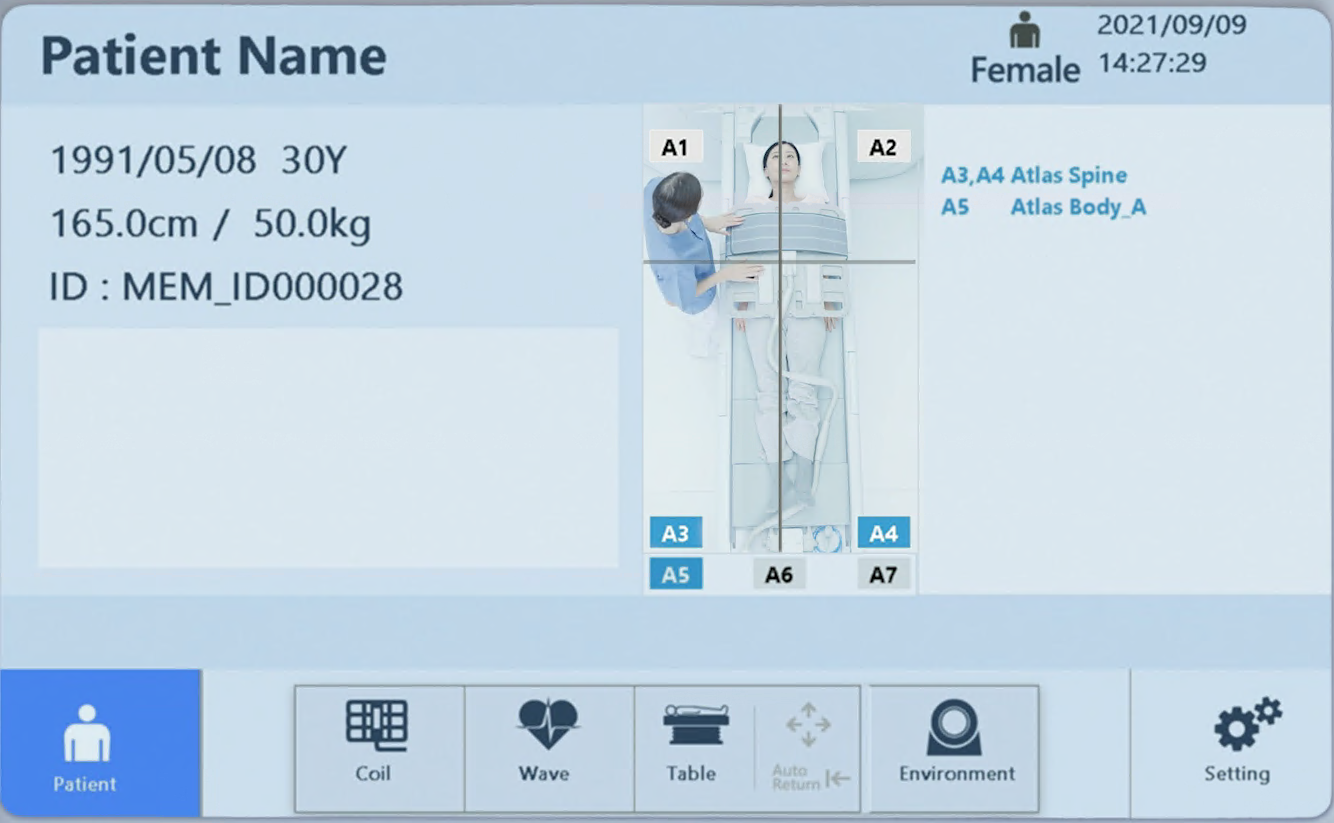 Камера у реальному часі виводить зображення пацієнта з розміткою «з висоти пташиного польоту» на інтелектуальний монітор, вбудований в МРТ.