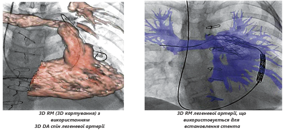 Флюороскопія в реальному масштабі часу накладається на об’ємні 3D зображення, що були отримані під час ротаційної ангіографії.