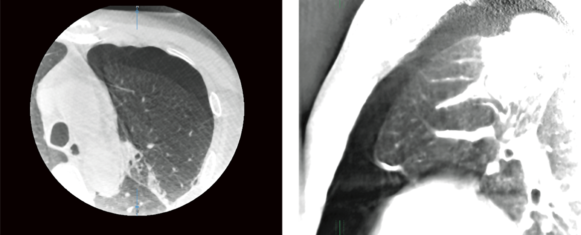 MPR зображення з Alpha CT легенів показує пневмоторакс після біопсії