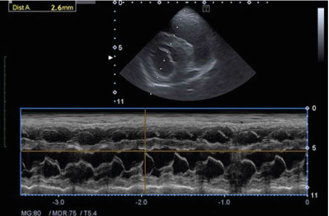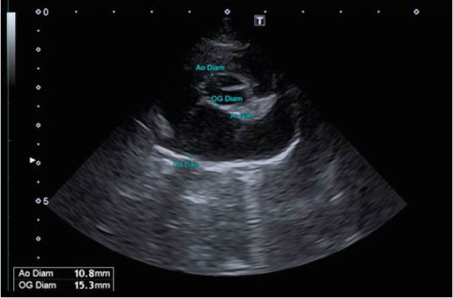 Дослідження серця в 2D М-режимі з візуалізацією аорти та лівого передсердя. Джерело: Клініка Альянс.