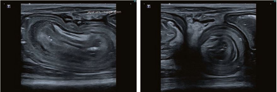Кішка, самиця, мейн-кун, два роки; на лікуванні від блювоти та схуднення протягом десяти днів; помірне збільшення обхвату при пальпації, УЗД кишківника з інвагінацією та затримкою газів; інтраопераційно: видалено 15 см кишківника; кішка почувається добре.