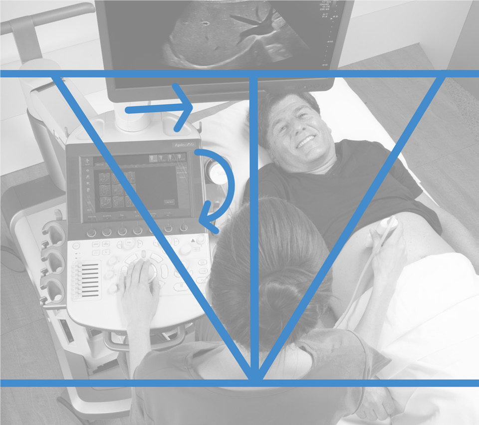 Якщо з самого початку дослідження система УЗД відрегульована на рівні з лікарем, то комфорт і взаємодія з пацієнтом з більшою ймовірністю будуть досягнуті і збережуться протягом усього дослідження, зменшуючи навантаження на опорно-руховий апарат від тривалого згинання та дотягування. Позиція, яка робить це можливим, називається магічним трикутником.
