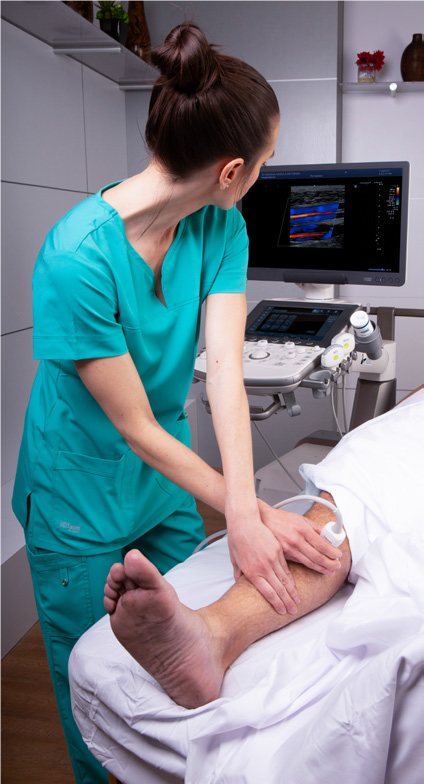 Звичайне положення лікаря УЗД під час дослідження вен нижніх кінцівок