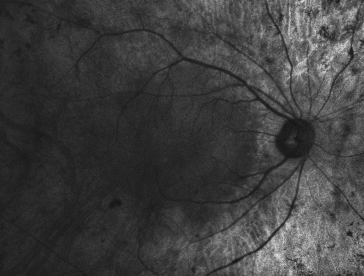 Пігментний ретиніт (пацієнт з артифакією) СЛО-зображення отримане за допомогою оптичного-когерентного томографа Canon Xephilio OCT A1