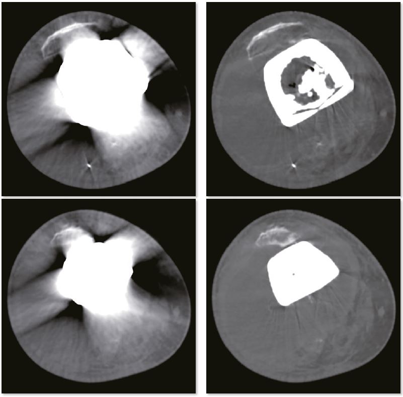 Металеві імплантати викликають проблеми з якістю зображення під час КТ-досліджень через ефекти зміцнення пучка (beam hardening effect) та фотонного голодування, що призводить до артефактів. Ці артефакти не тільки перешкоджають оцінці металевих імплантів та навколишніх кісткових структур, але, що більш важливо, вони можуть заважати оцінці прилеглих м’яких тканин. Враховуючи старіння населення та прогрес у протезуванні суглобів, дедалі зростає кількість пацієнтів, які звертаються до відділення радіології з металевими імплантатами, протезами і рутинна оцінка грудної клітки та живота у цих пацієнтів часто є незадовільною.