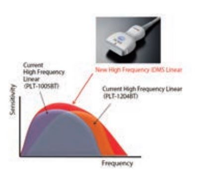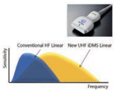 Однак найвидатнішою новою розробкою є надвисокочастотний датчик, який працює на частотах до 24 МГц, що раніше було неможливо уявити в клінічній візуалізації. Цей новий датчик забезпечує відмінну просторову роздільну здатність як для зображень у відтінках сірого, так і