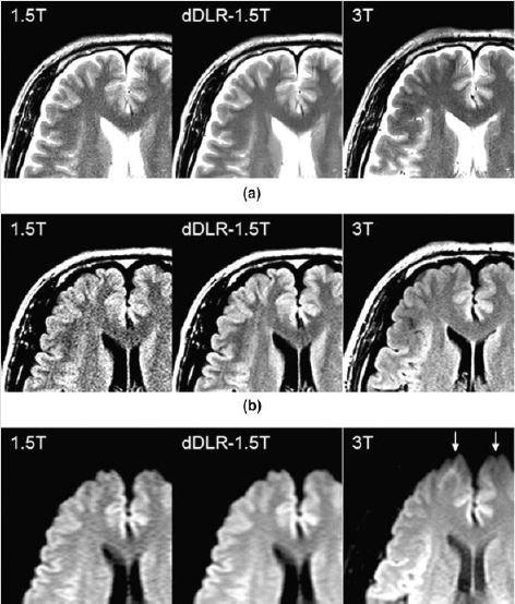 В 11 здорових добровольців було проскановано головний мозок на обох системах для отримання зображень T2WI, FLAIR і DWI на МРТ-системах 1,5T та 3T.