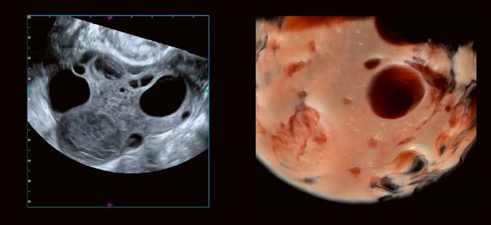 Рис. 5 B: 3D-візуалізація поверхні чітко окреслює фолікули на обох яєчниках.