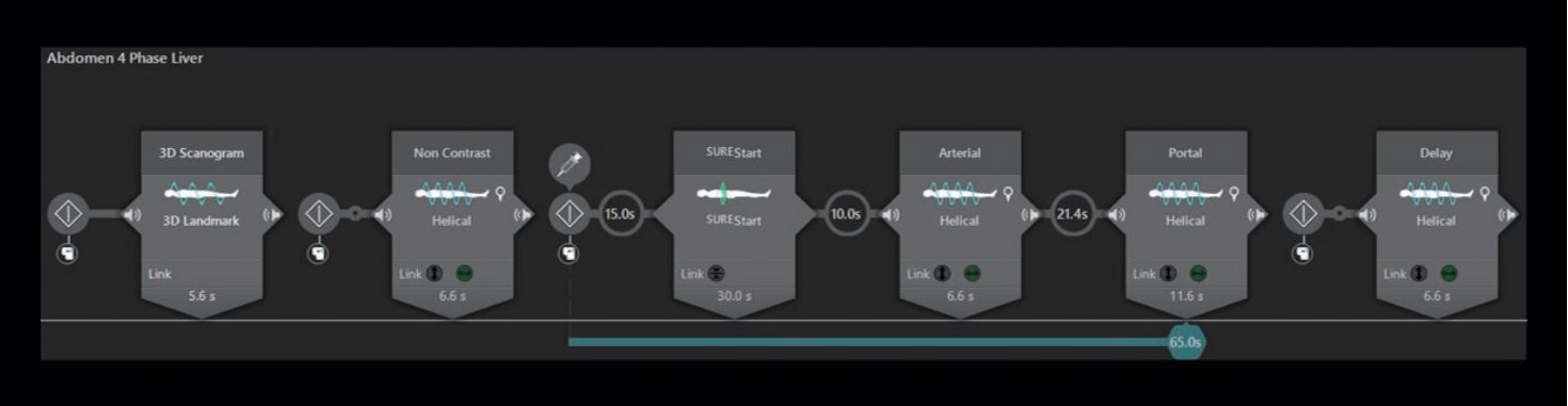 Рисунок 4: Протокол черевної порожнини, що показує діапазон сканування, встановлений у протоколі сканування, а потім у фактичному дослідженні пацієнта.
