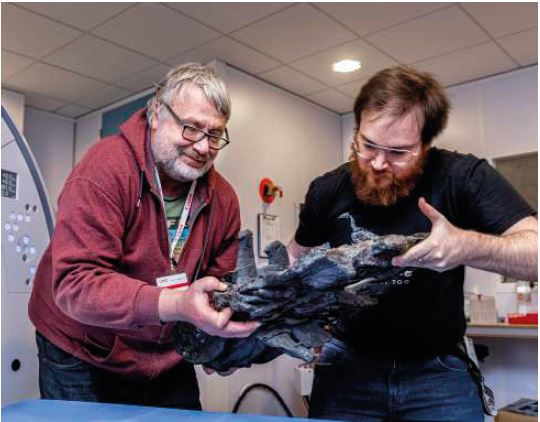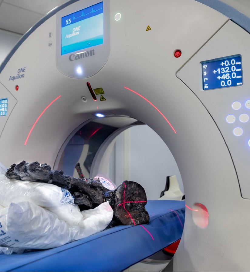 Професор Шульп зв’язався з Джоном ван Гуліком, європейським менеджером клінічного ринку КТ Canon Medical Systems Europe, який запропонував молодому досліднику зробити зображення фрагмента на сканері Aquilion ONE / PRISM Edition у Зутермері. Інтерпретація КТ допоможе Бертоццо підтвердити свої підозри.