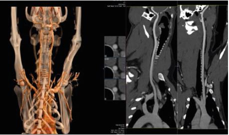 Чутлива технологія управління контрастом забезпечує стабільно високу якість результатів для діагностики різних судинних захворювань. Технологія SEMAR (Single Energy Metal Artifact Reduction) від Canon Medical мінімізує артефакти від металу та покращує візуалізацію імплантатів, опорної кістки та прилеглих м'яких тканин. Передові технології Canon Medical для комп'ютерного томографа Aquilion включають методи адаптивного ітеративного зменшення дози 3D (AIDR 3D) та вдосконалену інтелектуальну реконструкцію з глибоким навчання Clear-IQ Engine (AiCE) (DLR). Ця виняткова реконструкція на основі штучного інтелекту значно знижує рівень шуму і підвищує SNR (співвідношення сигналу до шуму).