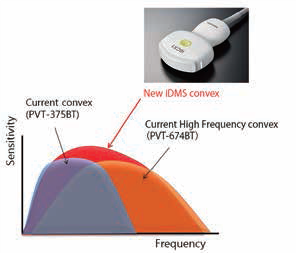 Система Aplio i-серії оснащена ультраширокосмуговим конвексним датчиком з iDMS PVT-475BX. Ультраширокосмуговий датчик призначений для покриття частотного діапазону, який зазвичай покривається двома датчиками, щоб забезпечити як високу роздільну здатність, так і глибину проникнення.