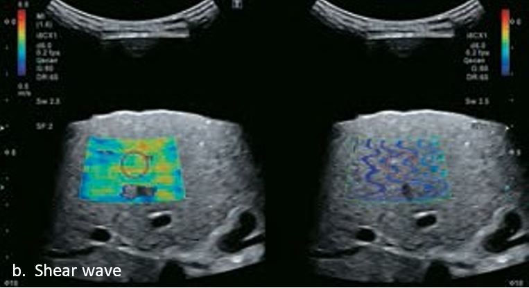 Ультразвук - це неінвазивний метод візуалізації, який широко використовується для оцінки захворювань печінки. Американська асоціація з вивчення захворювань печінки (AASLD) опублікувала практичні рекомендації щодо лікування ГЦК та рекомендовані групи ризику, такі як пацієнти з цирозом печінки будь-якої етіології або специфічними носіями гепатиту В були включені в програму спостереження. Ультразвукове дослідження є найкращим інструментом спостереження, що ґрунтується на результатах масштабного випадкового контрольованого дослідження, а рекомендований інтервал спостереження становить 6 місяців, виходячи з часу подвоєння ВГС.5