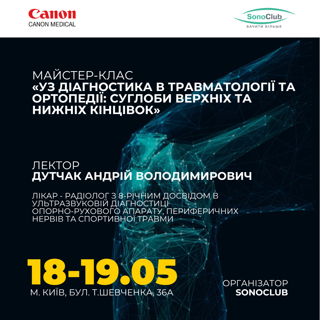Запрошуємо на 2-х денний офлайн майстер -клас «Ультразвукова діагностика в травматології та ортопедії: суглоби верхніх та нижніх кінцівок». 10.05.2024 Дізнатися більше