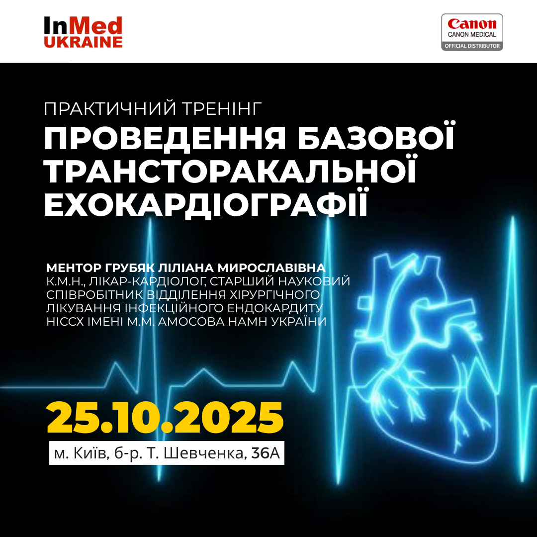 Запрошуємо на практичний тренінг «Проведення базової трансторакальної ехокардіографії» 20.10.2025 Дізнатися більше