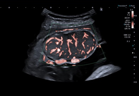 • cSMI - відображається, як і інші доплери, у вигляді кольорового зображення судин на фоні тканини в межах обраної області інтересу (ROI),