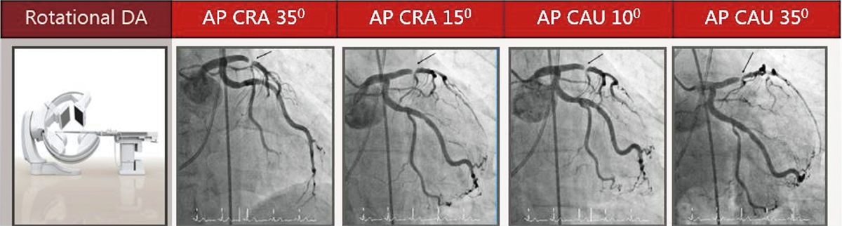 2D ротаційна ангіографія коронарних судин, виконується за одну ін’єкцію контрасту під час обертання C-дуги, та допомагає отримати діагностичні зображення коронарних артерій. Використання цієї технології дозволяє клініцистам отримувати зображення оптимальної якості зі зниженою дозою порівняно з традиційними методами отримання зображень. Автоматизоване послідовне поворотне отримання зображень допомагає клініцистам визначити пріоритезувати безпеку та ефективність.