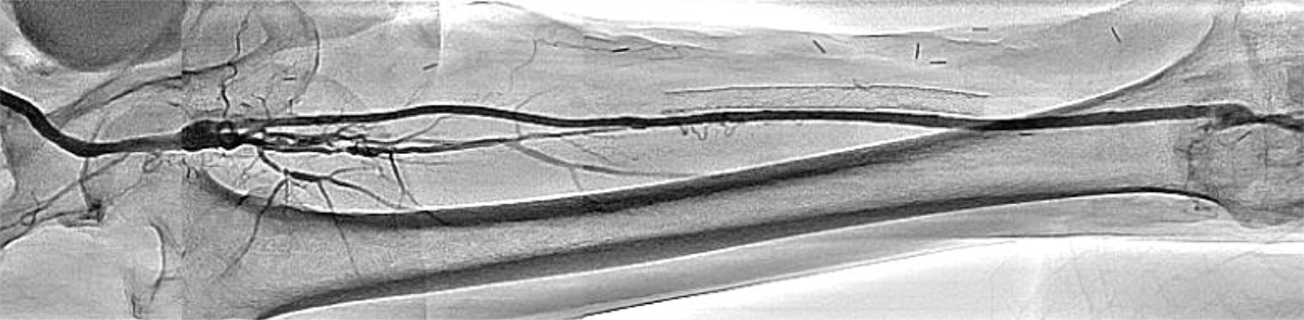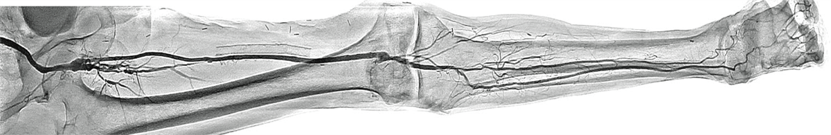 Dynamic Trace дає клініцистам можливість виконувати цифрову зйомку під час руху стола за потоком контрасту. Це зображення є прикладом панорамування від стегна до стопи