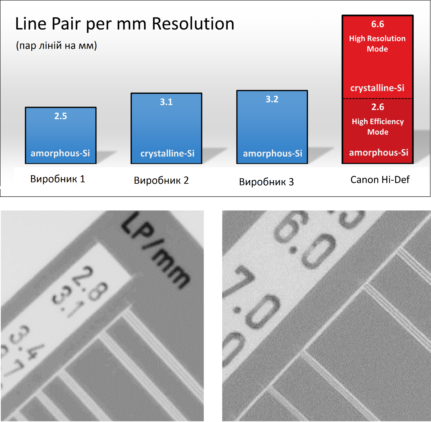 *Задокументоване тестування продемонструвало перевагу у якості зображення у детекторів з більшою роздільною здатністю до 2,5 разів