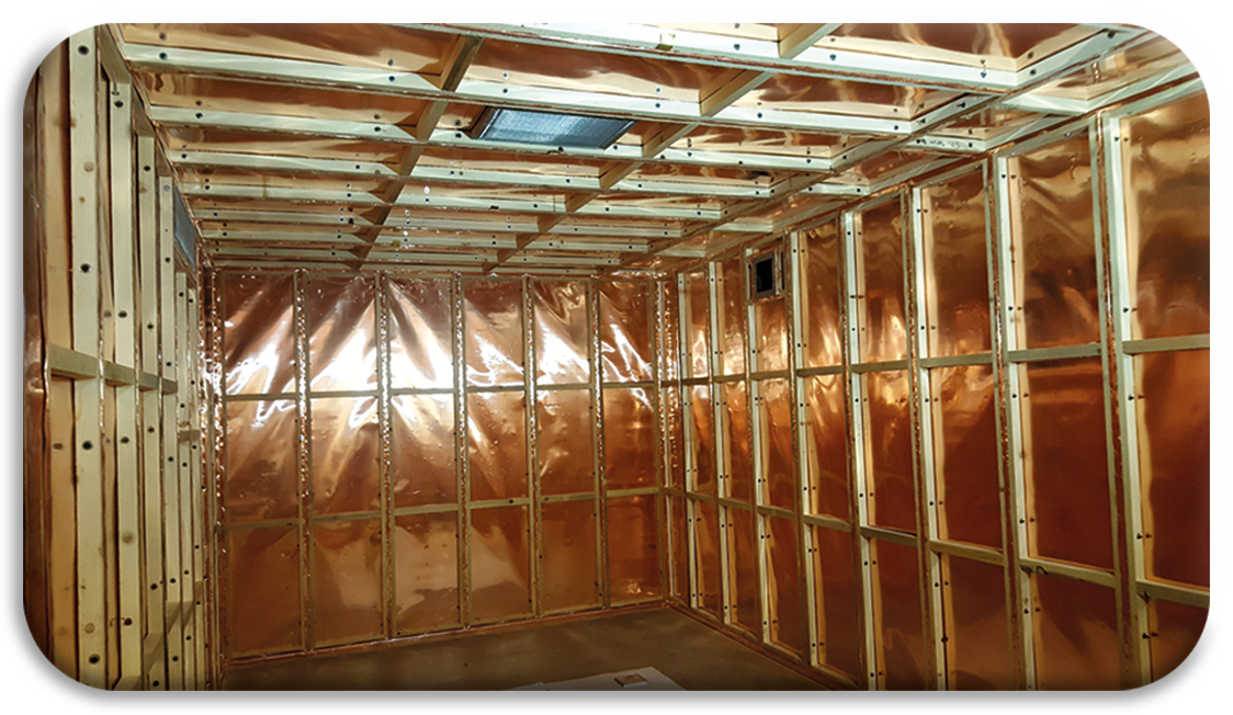 Рис. 1 та 2. Кімната сканування з інстальованою кліткою Фарадея з міді. Фото із середини.