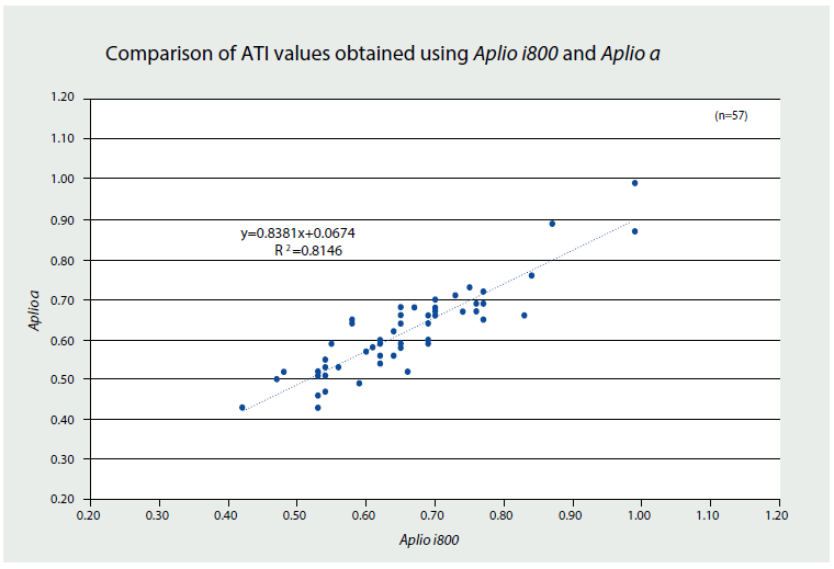Рис.2 Порівняння значень ATI, отриманих за допомогою Aplio i800 і Aplio a