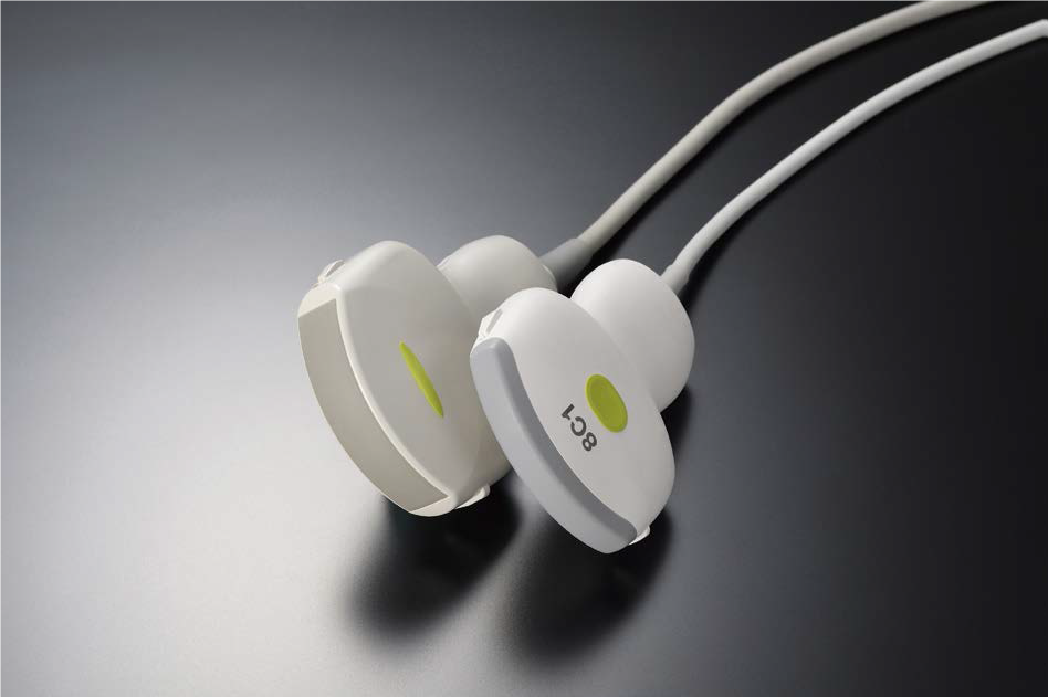 У тонкому конвексному датчику (PVT-475BT), який розроблений для Aplio a, використовується монокристалічна речовина, відома як поліметилпентенова смола, яка дозволяє зменшити товщину головки датчика лише до 9 мм (рис. 5). Як наслідок, міжреберне сканування можна виконувати набагато легше при обстеженні печінки. Мала вага датчика також допомагає мінімізувати втому оператора.