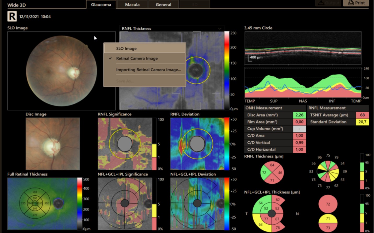 Для дослідження при підозрі на глаукому 𝗢𝗖𝗧-𝗔𝟭 пропонує режими сканування Glaucoma 3D/ Disk3D /Cross. Протоколи Glaucoma 3D/Disk 3D підтримують вимірювання NFL + GCL + IPL та GCL + IPL з широким набором графічних зображень для повного аналізу. Cross – 2D режим для уточнюючого сканування з роздільною здатністю 1024 А-сканів по вертикалі та горизонталі. 𝗫𝗲𝗽𝗵𝗶𝗹𝗶𝗼 𝗢𝗖𝗧-𝗔𝟭 надає вам повний спектр інструментів звітності.