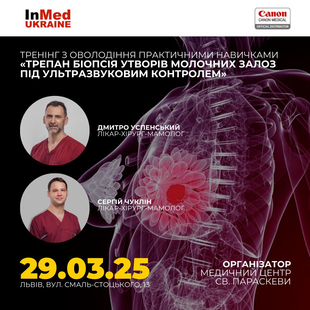 Колеги, запрошуємо вас на очний тренінг з оволодіння практичними навичками «Трепан біопсія утворів молочних залоз під ультразвуковим контролем»!