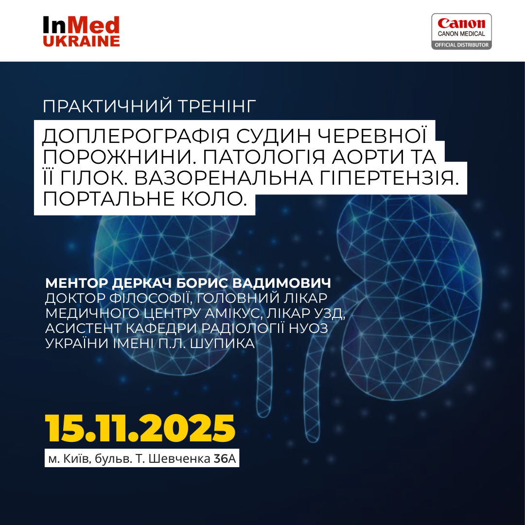 Запрошуємо Вас на практичний тренінг "Доплерографія судин черевної порожнини. Патологія аорти та її гілок. Вазоренальна гіпертензія. Портальне коло".