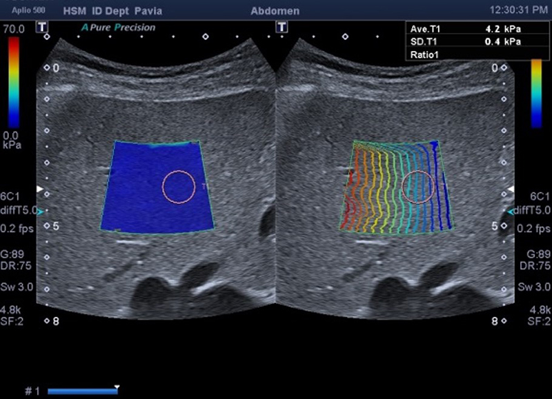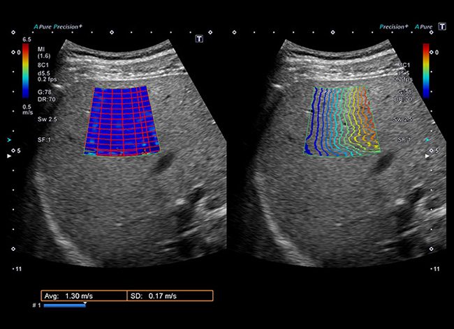 Саме застосування УЗД-апаратів від CANON MEDICAL повністю змінило стандарти діагностики фіброзу печінки — еластографія використовує ультразвук в реальному часі для оцінки еластичності тканин і є швидким, простим, відтворюваним і надійним методом неінвазивної оцінки фіброзу печінки.