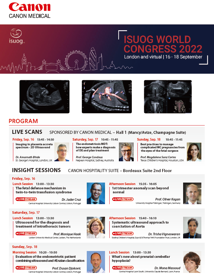 Canon Medical запрошує Вас приєднатися до нашої освітньої сесії, де провідні експерти галузі продемонструють клінічну цінність новітніх ультразвукових технологій, які допоможуть вам покращити свою практику в акушерстві та гінекології.