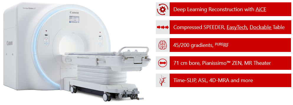 Отримайте оптимізований робочий процес, високу якість зображення та максимальний комфорт для пацієнта в МРТ Vantage Galan 3T від Canon Medical. Система була розроблена, щоб задовольнити Ваші потреби та потреби Ваших пацієнтів.