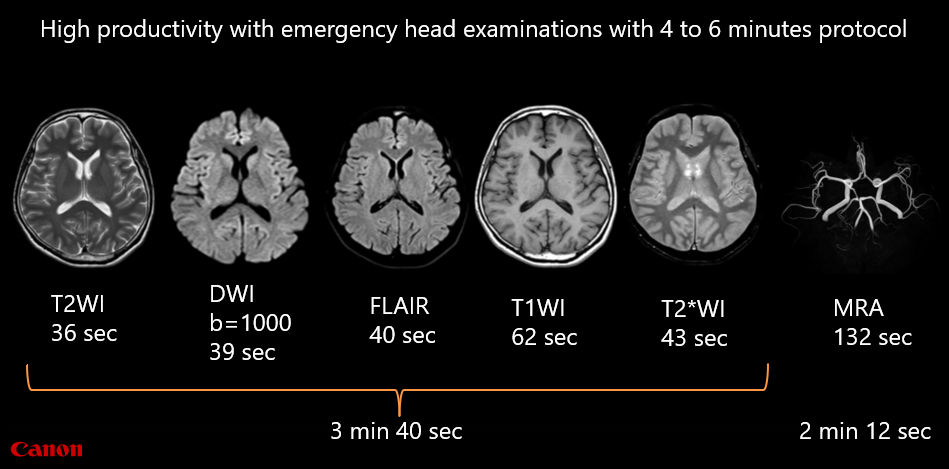 Завдяки поєднанню базових технологій ATLAS, Pianissimo™, SPEEDER проведення досліджень займають мінімум часу та надають максимум комфорту для пацієнта. Завдяки поєднанню різних анатомічних котушок. Обстеження головного мозку за короткий час доступне з Vantage Orian 1.5T.