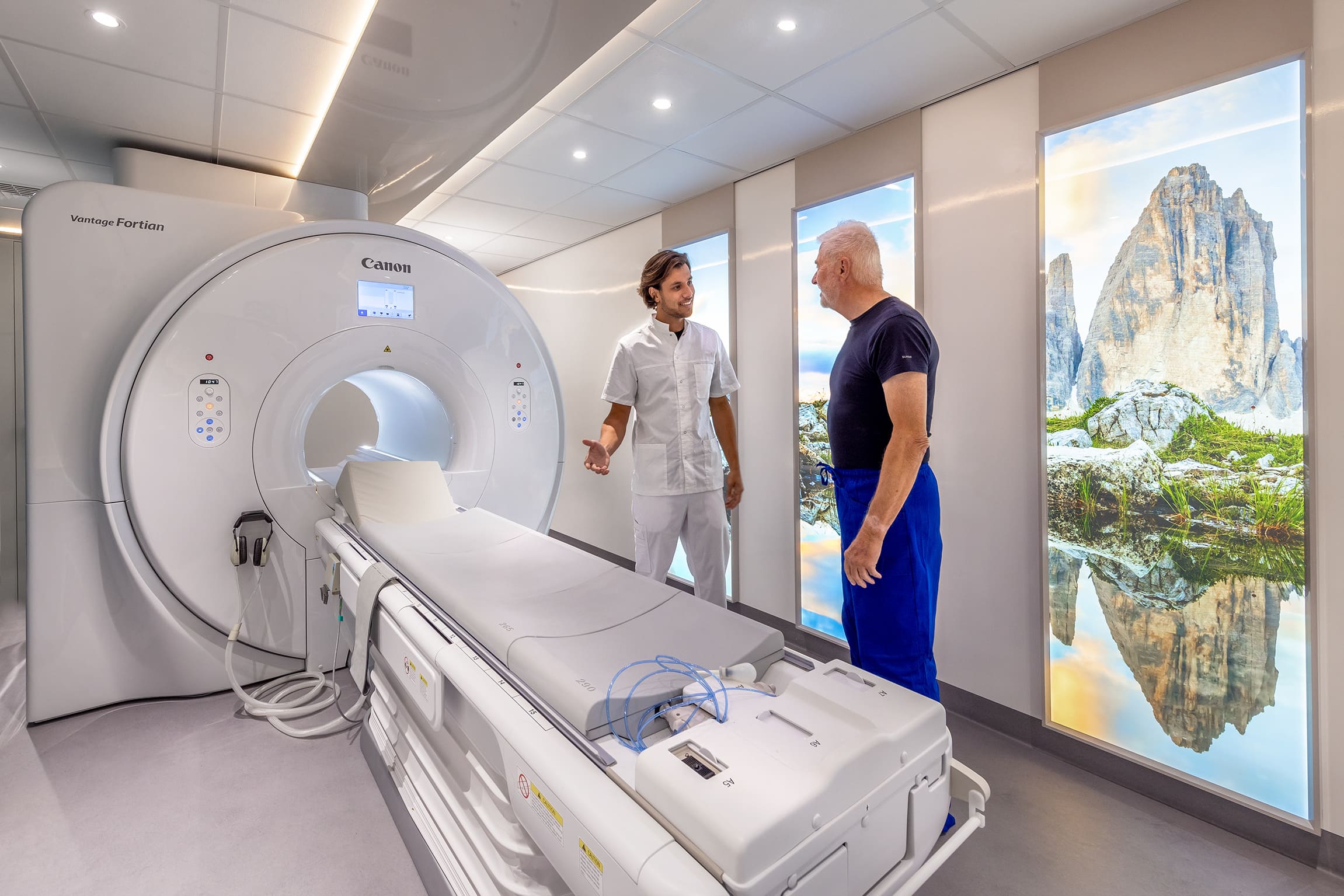 Зробіть крок у майбутнє мобільної візуалізації з Canon MR Relocatable. Завдяки сучасному, зручному для пацієнта інтер'єру та розширеним можливостям, це мобільне МРТ-рішення дає вам змогу надавати виняткову допомогу в будь-який час і в будь-якому місці.