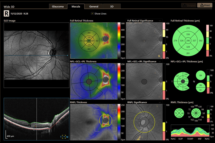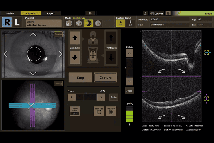 Результати послідовних обстежень візуалізуються в комплексному звіті з функцією автоматичного сповіщення про якість зображення, яка сповіщає експерта, коли зроблене зображення має недостатню якість. Послідовність протоколу обстеження може бути налаштована відповідно до вимог користувачів і може включати до 4 обстежень ОКТ + 1 фото очного дна або 5 обстежень ОКТ для обох очей.