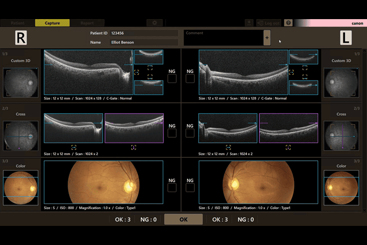 Функція інтелектуального усунення шумів Canon на основі штучного інтелекту пропонує нову якість зображень ОКТА на основі лише одного сканування – без необхідності отримувати та об’єднувати кілька зображень. Технологія Canon Deep Learning — це революційна технологія, яка базується на величезних обсягах клінічних даних для отримання зображень із значно зменшеним шумом зображення, підвищеною деталізацією та покращеною видимістю всього за кілька секунд.