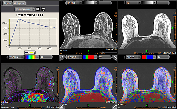 Додаток Kinetics вимірює тип контрастного підсилення за допомогою аналізу кінетичних кривих і передбачає злоякісність при патологіях молочної залози та передміхурової залози.