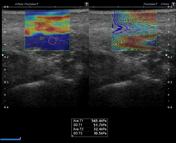 Технологія Еластографія зсувної хвилі, розроблена корпорацією Canon Medical, дозволяє отримувати кількісні дані про жорсткість тканин (швидкості поширення «зсувної хвилі») і візуалізувати цю інформацію у вигляді інтелектуальних карт для оцінки стану сухожиль, нервів та шкіри в режимі реального часу.