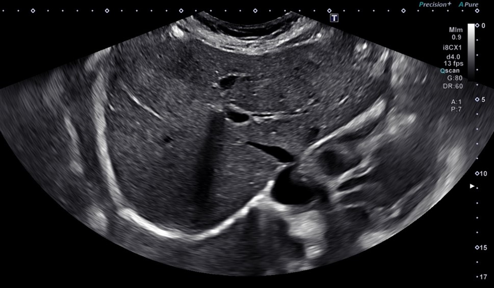 Якісна об'ємна візуалізація з високою роздільною здатністю може допомогти оцінити вагітність вже на перших етапах життя. В цьому прикладі - дихоріонічна вагітність з двійнятами на 9 тижні, де чітко визначена перегородка між обома мішками.